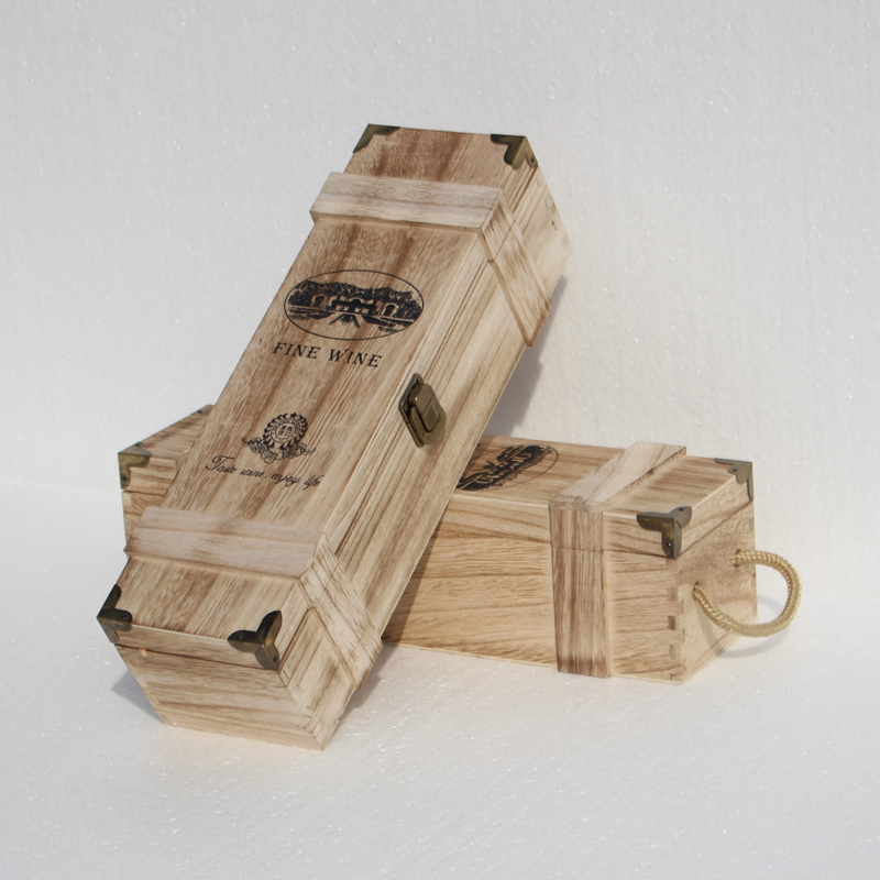 紅酒禮盒木頭盒子單支鐵包角復古